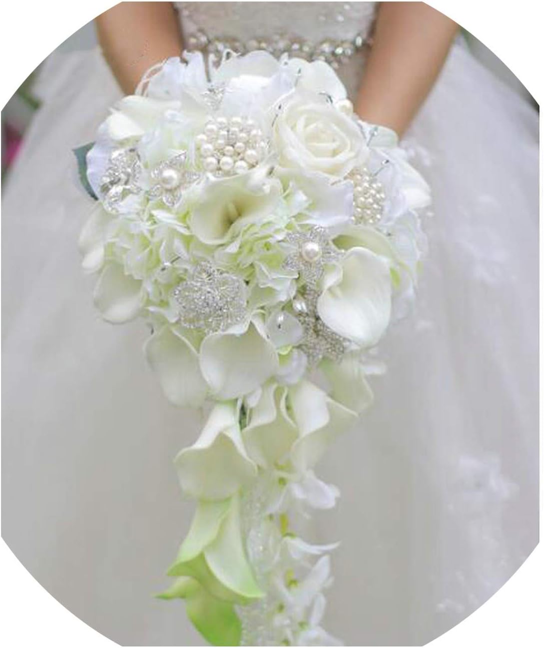 Amazon Com Blue Flower Calla Lily Wedding Bouquet Waterfall Romantic Designer Artificial Wedding Flowers Bridal Bouquet Ramos De Novia White Green Kitchen Dining