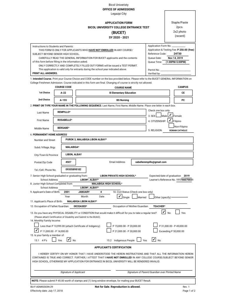 Bicol University College Entrance Test Bucet Pics Review Center