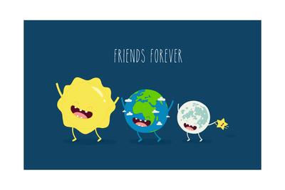 Cute Cartoon Planet Earth Sun Moon And Star Earth Day Background Art Print Serbinka Art Com