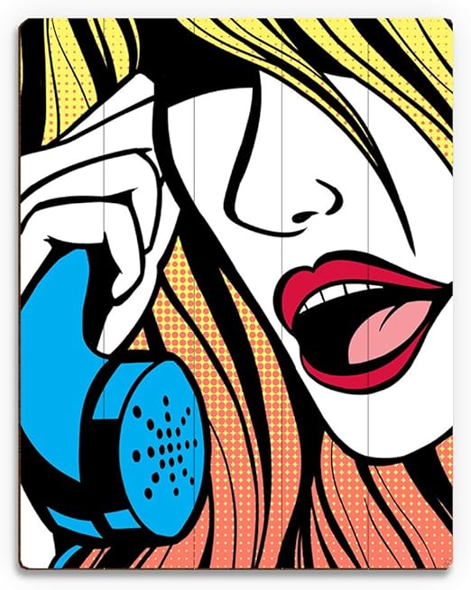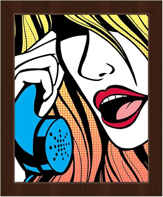 Amazon Com Screentones And Telephones Orange Pop Art Cartoon Drawing Of Woman Talking On Retro Vintage Telephone Wall Art Print On Canvas With Espresso Frame Posters Prints