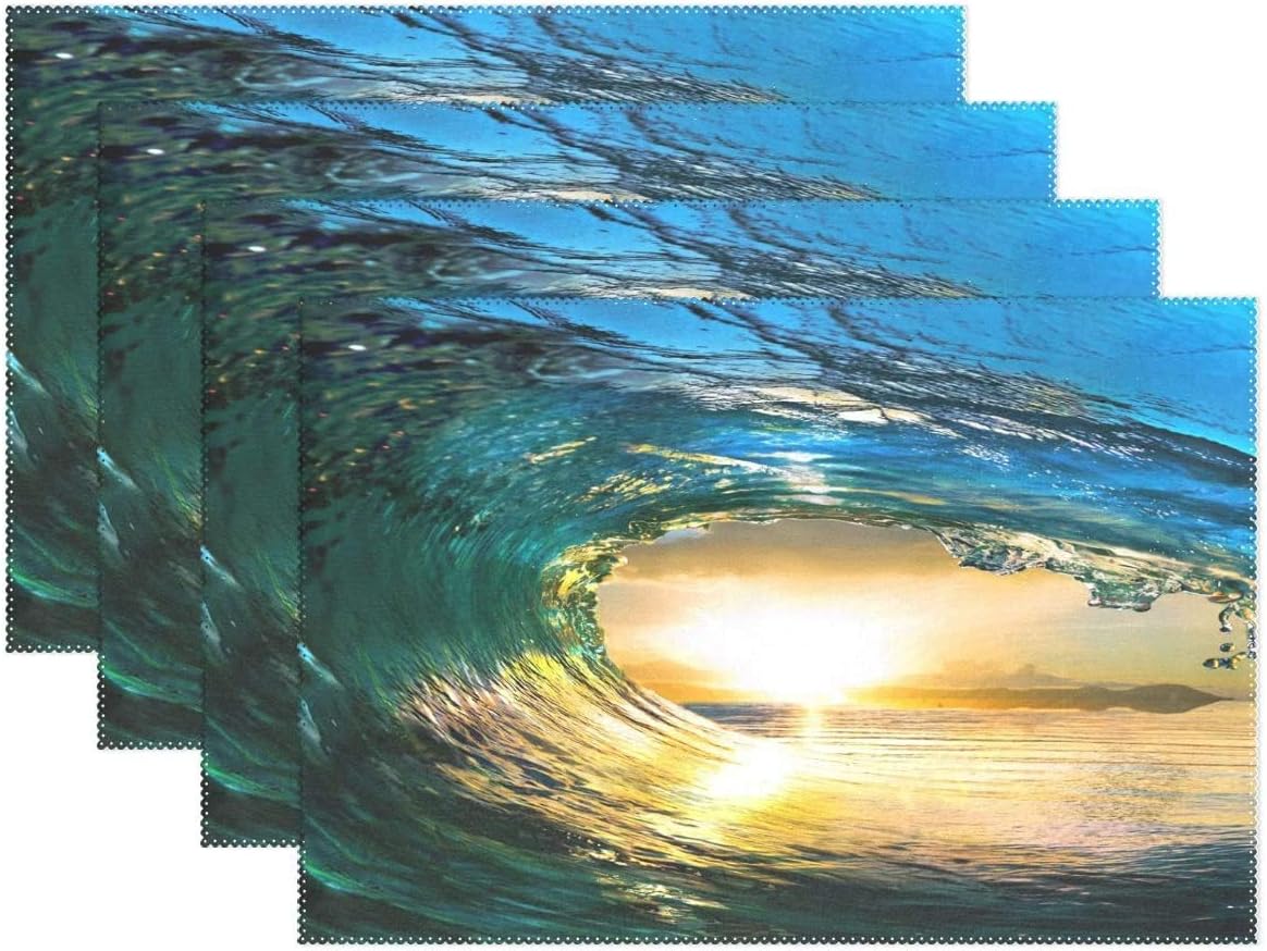 Amazon Com Fantasy Ocean Wave Sea Sunset Placemat Table Mat Nature Landscape 12x18 Inch Polyester Table Place Mat For Kitchen Dining Room Set Of 4 Home Kitchen