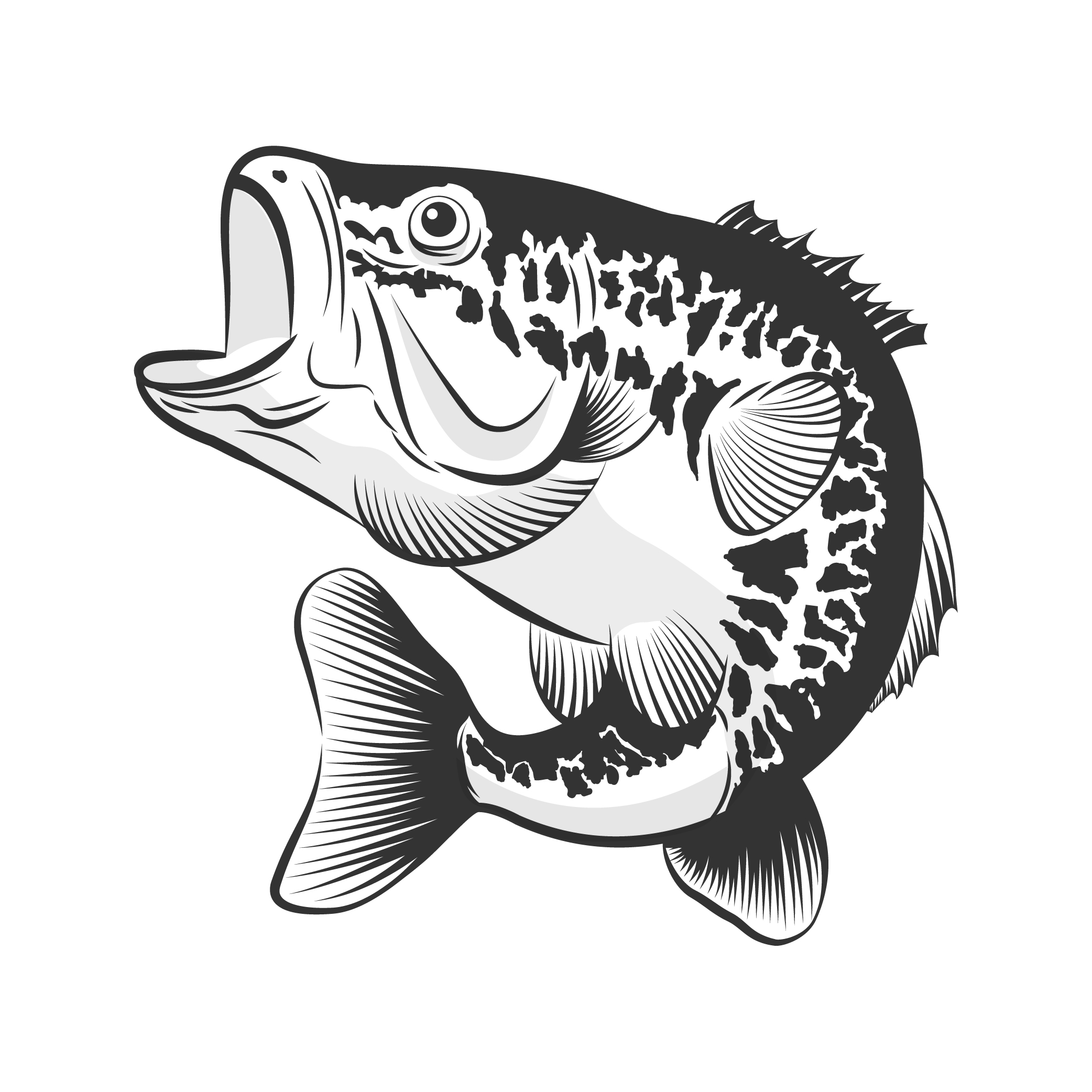 Bass Fish Line Drawing Style On White Background Design Element For Icon Logo Label Emblem Sign And Brand Mark Vector Illustration Download Free Vectors Clipart Graphics Vector Art