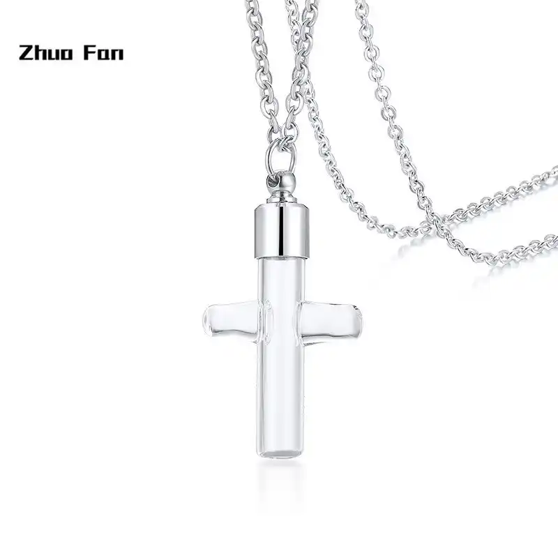 2020 New Stainless Steel Glass Open Cross Urn Box Pendant Man Necklace Free Package Mail Aliexpress