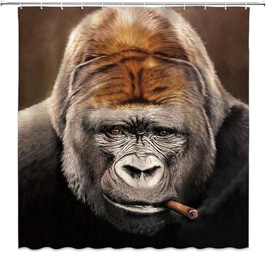 Amazon Com Smoking Gorilla Shower Curtain Wildlife Funny Orangutan Personality Wild Animal Decor Fabric Bathroom Curtains Waterproof Polyester With Hooks 70x70 Inch Home Kitchen