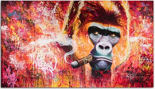 Amazon Com Smengjia Graffiti Monkey Gorilla Smoking Painting Street Art Oil Painting Canvas Prints Modern Pop Poster Picture On The Wall 70x140cm No Frame Posters Prints