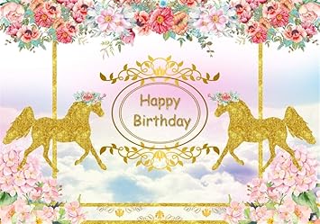 Amazon Com Aofoto 10x7ft Golden Horse Carousel Background Happy Birthday Backdrop Party Decoration Whirligig Horses Flowers Banner Sweet Little Princess Baby Girl Bday Celebration Wallpaper Photo Studio Props Camera Photo