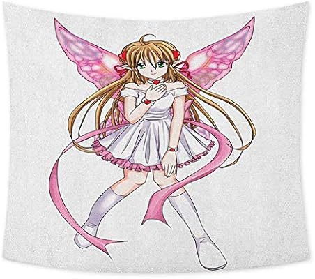 Amazon Com Jecycleus Anime Psychedelic Tapestry Hippie Cartoon Illustration Of A Pixie Character With Hearts And Wings Fantastic Fairy Angel Tapastry Wall Art For Living Room W59 X L51 Inch Multicolor Home
