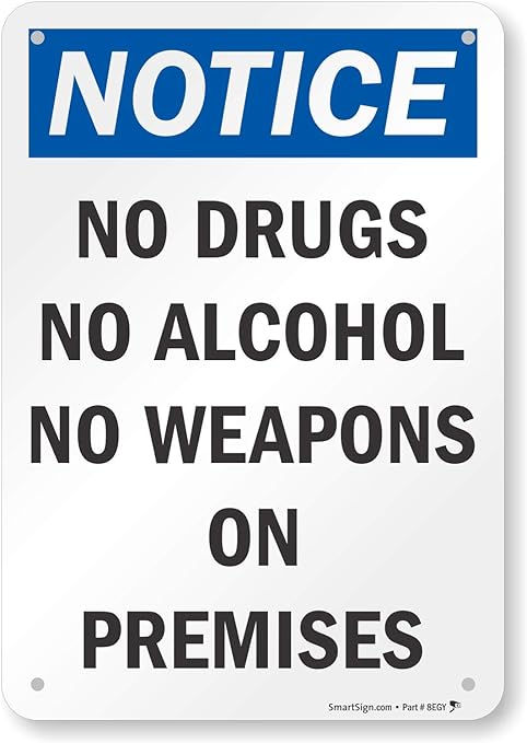 Smartsign Notice No Drugs Alcohol Weapons On Premises Sign 7 X 10 Aluminum Amazon Com Garden Outdoor