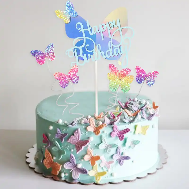 Decoracion De Pastel De Mariposa De Papel Rosa Colorido Decoracion De Decoracion Para Ninos De Feliz Cumpleanos Con Flores Acrilicas Fiesta De Cumpleanos Boda Baby Shower Aliexpress