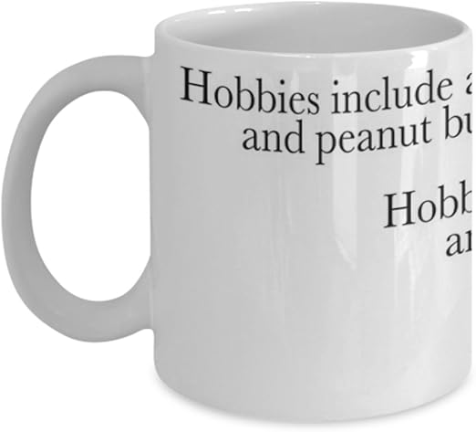 Amazon Com Hobbies Include A Spoon And Peanut Butter Coffee Mug Tea Cup Funny Quote Gift Idea For Him Or Her Women And Mother Father S Day Sister Broth Kitchen Dining