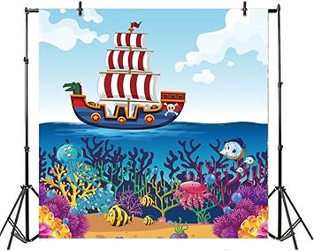 Amazon Com Leyiyi Cartoon Pirate Ship Backdrop 5x5ft Photography Background Sail Boat Octopus Seaweed Blue Sea Water Children Baby Portraits Studio Props Room Decor Camera Photo