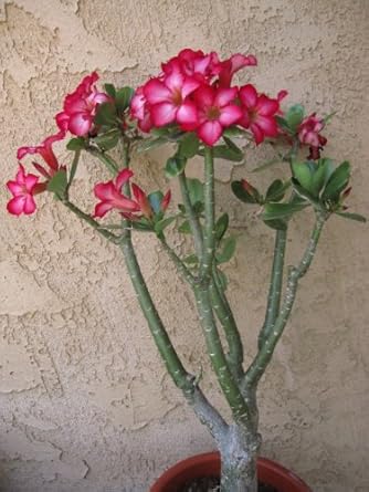 Amazon Com Rare Adenium Obesum Planta De Rosa Del Desierto Bicolor Flor 1 Raiz Desnuda No Semillas Planta De Bonsai De Jardin Para El Hogar Excelente En Contenedores Jardin Y Exteriores