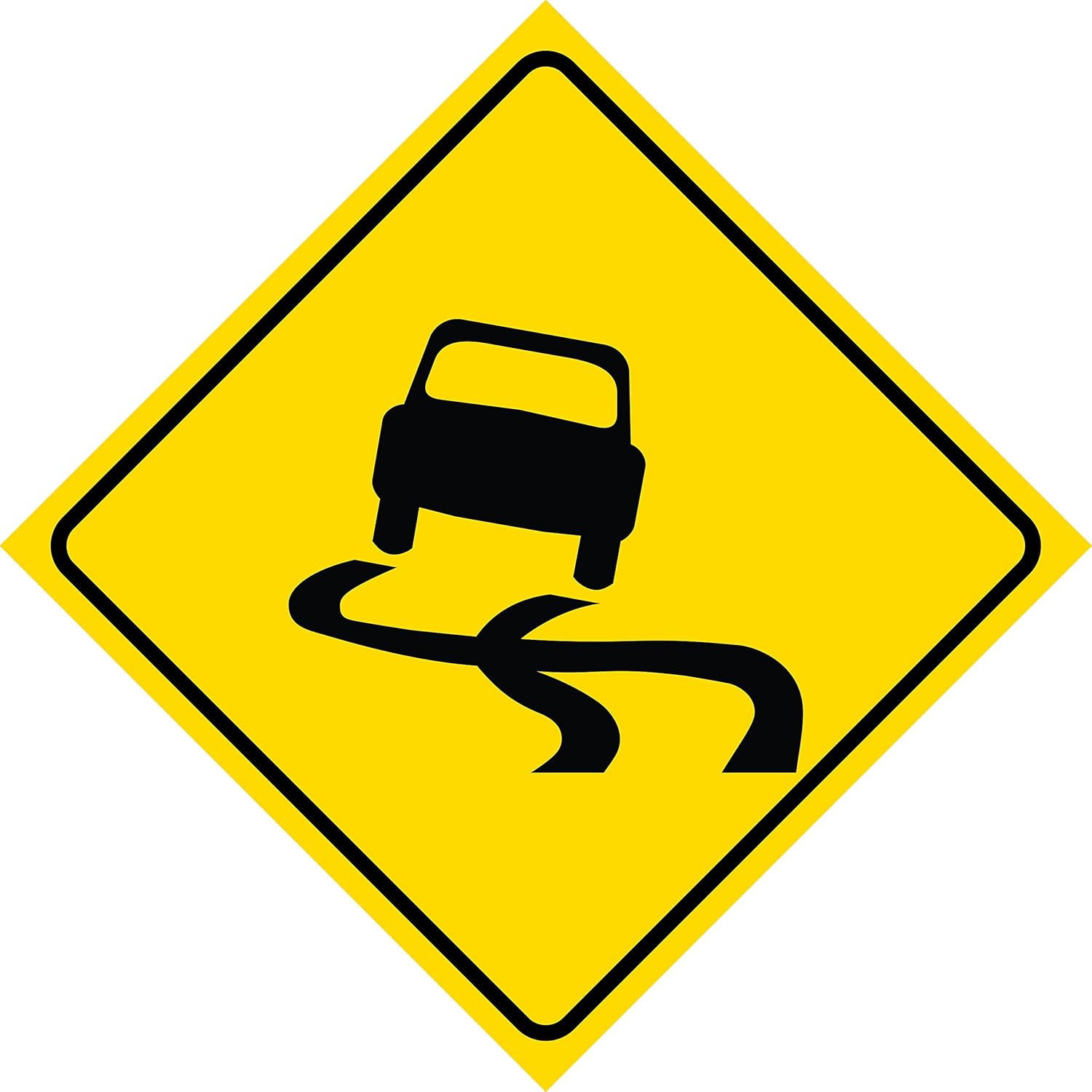 Amazon Com Yellow Diamond Caution Slippery When Wet Car Road Sign Commercial Plastic Square Sign Single Sign 12x12 Office Products